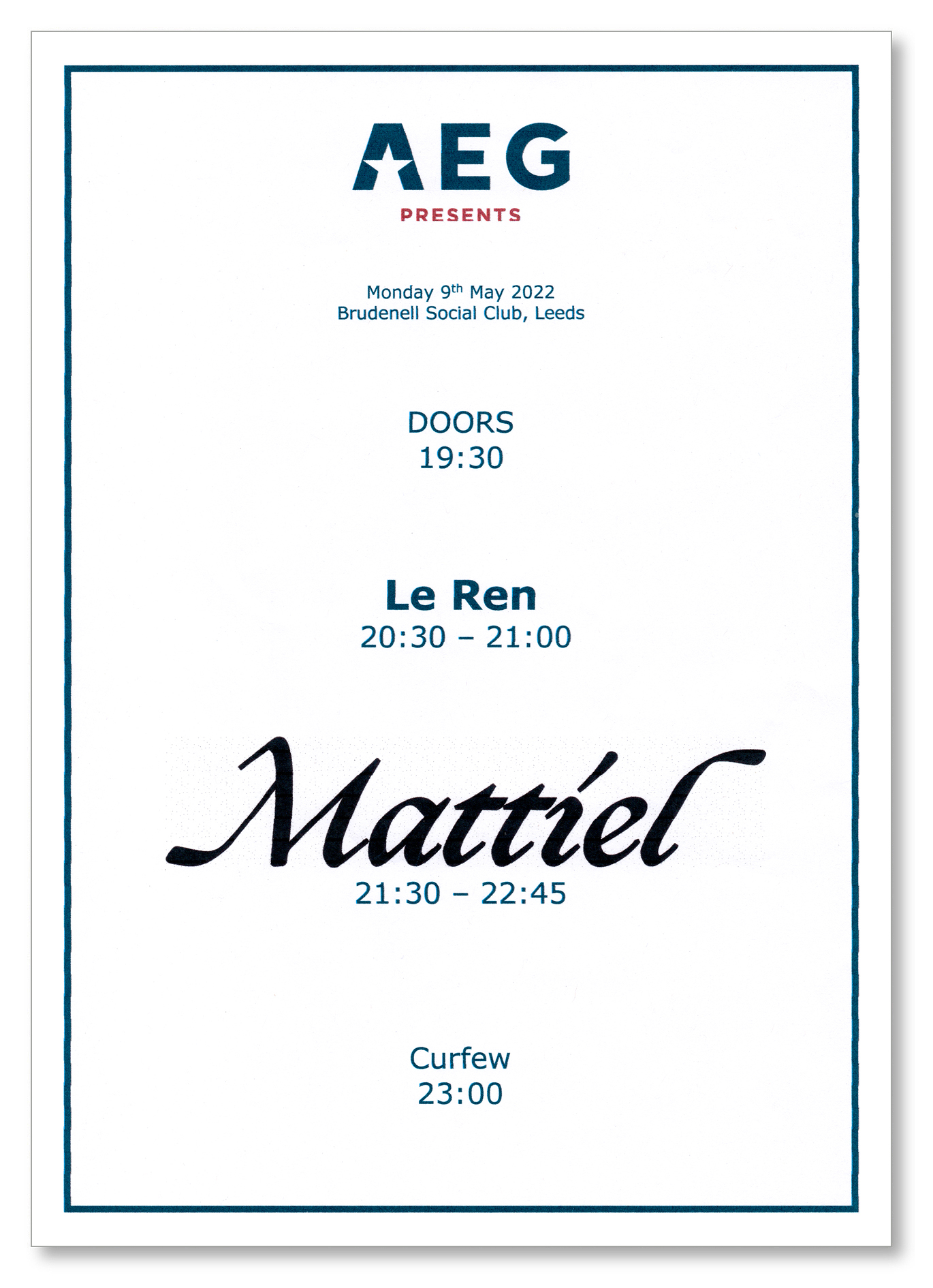 Originally planned for 21.11.21 with Garbage as the support band but rescheduled to 4.5.22 with Johnny Marr supporting (an equally welcome substitution).