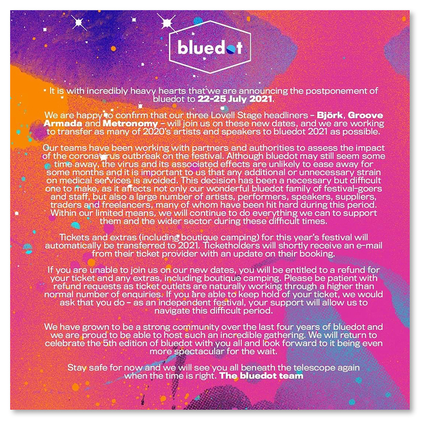 Assured of a similar line-up when things got back to normal, we held-on to our tickets but 12 months later COVID chaos still reigned. Spikes in virus levels, the need for quarantine ‘bubbles’ and near-impossible international travel scuppered any plans for large gatherings with international line-ups. As tickets rolled-over for a second year, we decided to cut our losses and cash them in.